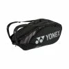 Three compartments all with zips. In the front pocket of the bag there are open dividers and one zip pocket for organising and securing your accessories. One racket pocket with a strap to secure your racket during travel. Mesh and padding on the back of the bag to make it more comfortable when you are carrying the bag.