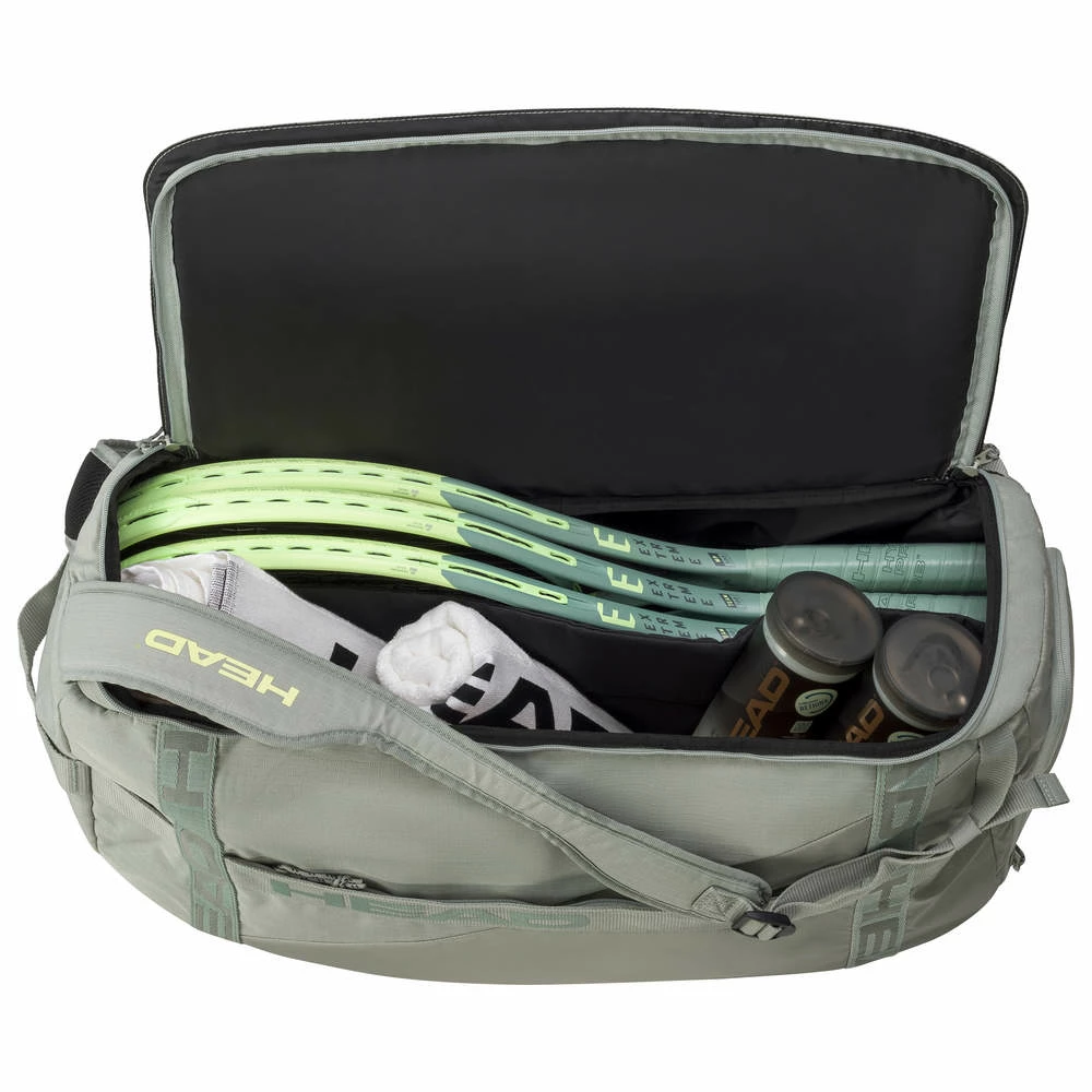 The PRO DUFFLE BAG M LNLL – which is endorsed by Matteo Berrettini – has a new shape with two compartments that can fit six racquets. One of those compartments has climate control technology CCT+ that protects against extreme temperatures. The diagonal adjustable shoulder strap allows you to be flexible when you’re on the road, while the inside mesh pocket and outside pocket allow quick access to anything you need. The modern shape and design match HEAD’s EXTREME racquet series.